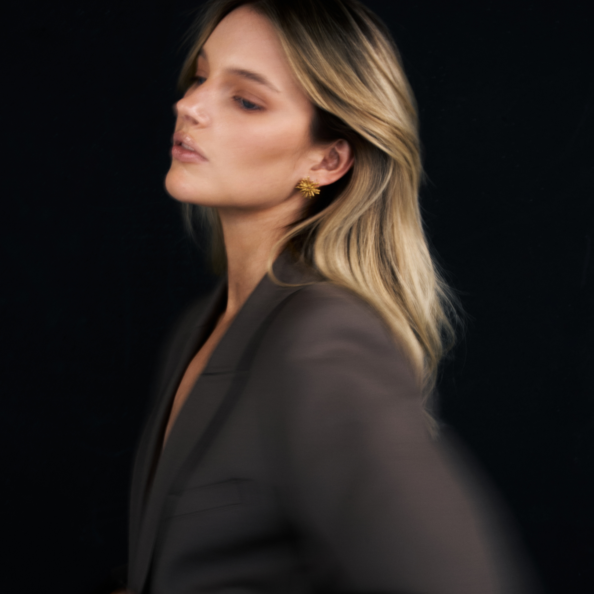 A delicate explosion of geometric rays, this stud transforms a simple design into a captivating focal point. It's a miniature constellation that adds a hint of celestial wonder to your look.